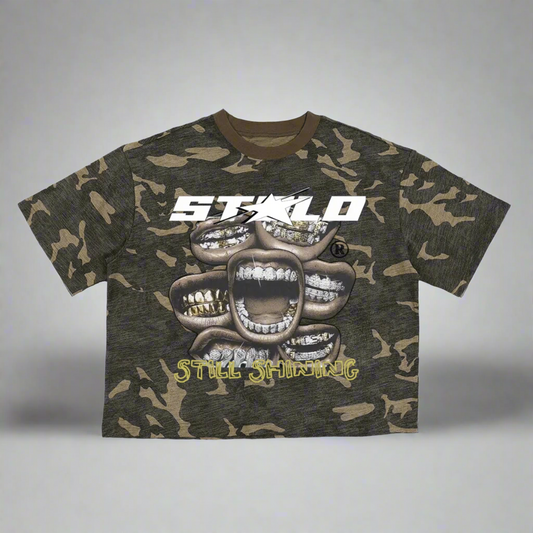 Limited Editon Stolo Clothing Co Still Shining Unisex Camo Cropped Oversized Tee