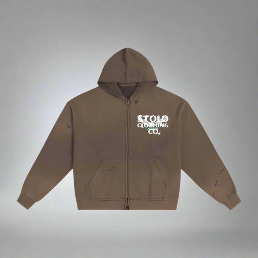 Limited Edition Stolo Clothing Co Birdies Hand-Frayed Pure Cotton Double Zip Up Hoodie