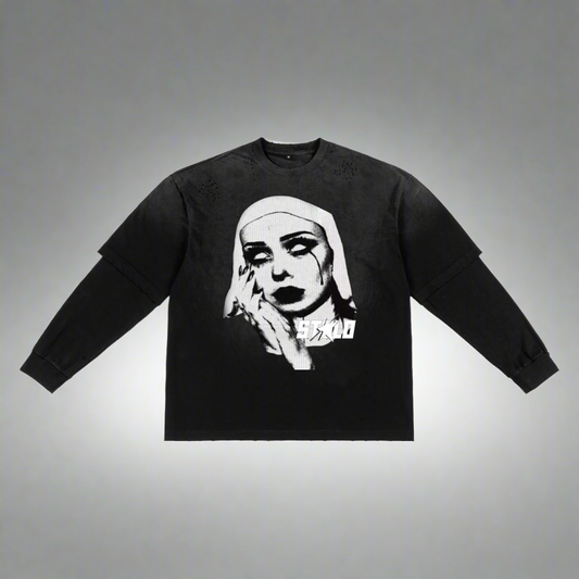 Stolo Clothing Co EVIL NUN Sun Faded Hand-Frayed Double Layered Tee