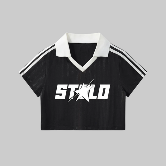 Stolo Clothing Co STARCHILD Contrast Collar Striped Cropped Jersey Tee