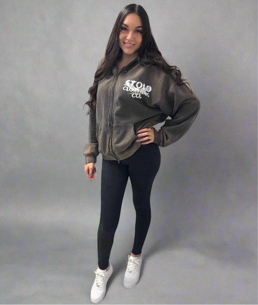Limited Edition Stolo Clothing Co BABY ANGELS Hand-Frayed Sun Faded Double Zip Up Hoodie