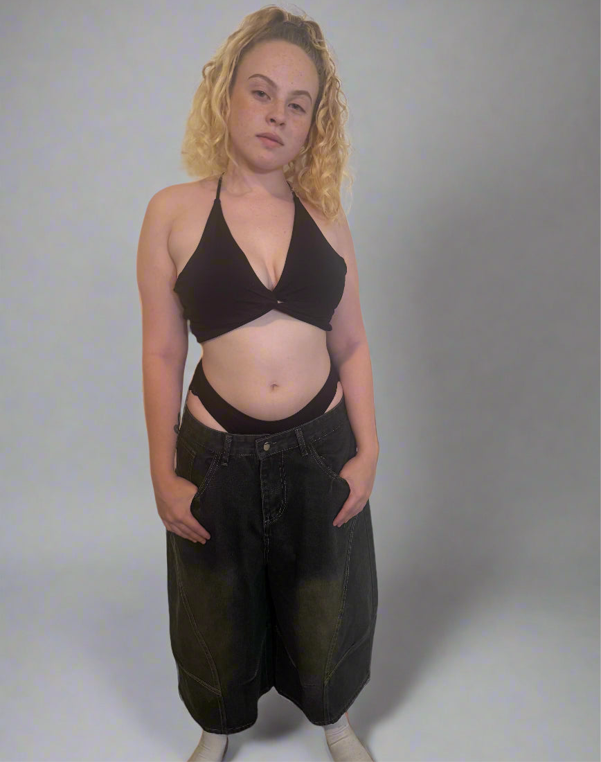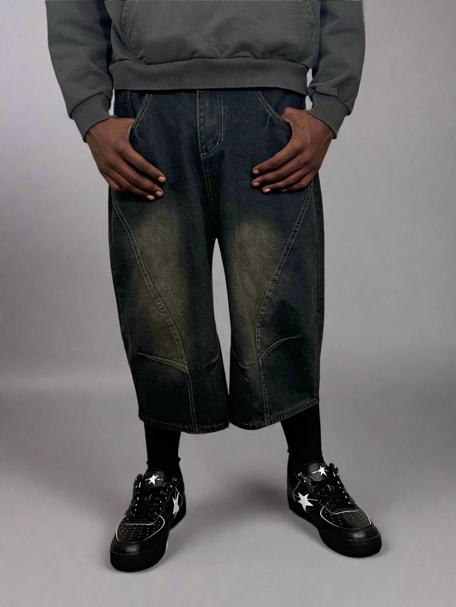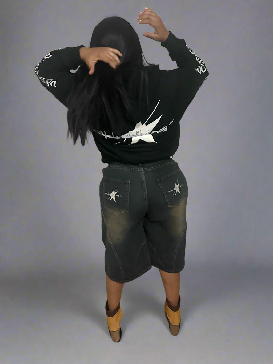 Stolo Clothing Co proudly presents its essential unisex wide-leg curved blade denim shorts, affectionately known as jorts. These shorts are not just a fashion statement; they embody a perfect blend of comfort and versatility, making them an indispensable addition to any casual wardrobe. Crafted with a keen eye for detail, the unique design features a wide-leg silhouette that allows for ease of movement, while the curved blade cut adds a contemporary flair that sets them apart from traditional denim shorts.Ā