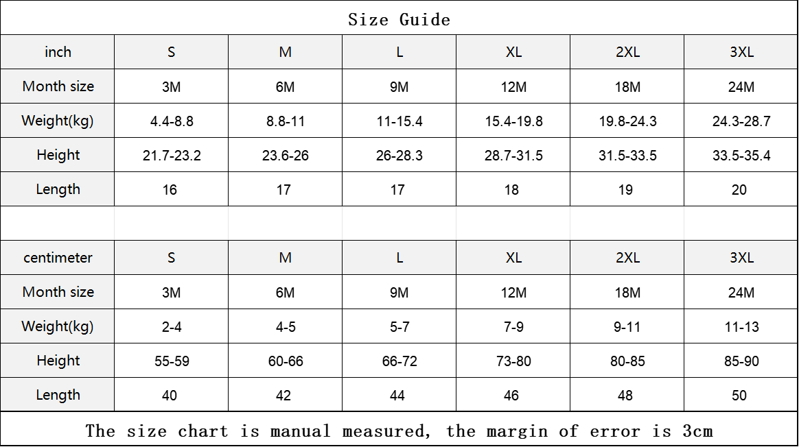 | Month Size | 3M | 6M | 9M | 12M | 18M | 24M |