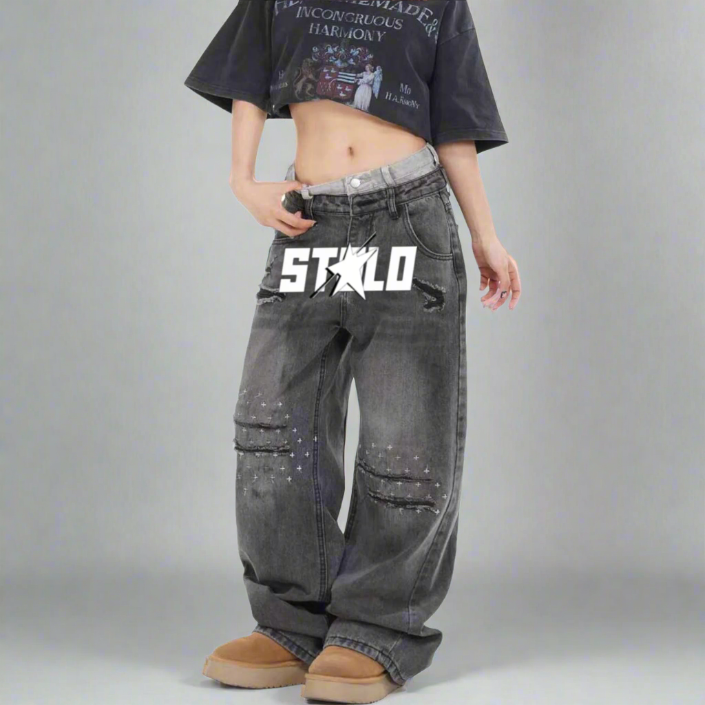 These jeans are perfect for casual outings or laid-back days, making them a must-have for fashion-forward individuals who value both comfort and aesthetic appeal. Pair them with a simple tee and sneakers for a relaxed look, or dress them up with a stylish blouse and ankle boots for a night out. With their unique design and versatile nature, Stolo Clothing Co's baggy denim jeans are sure to become a staple in your wardrobe, allowing you to express your personal style with confidence.